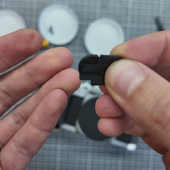 Wichtiger Hinweis zur Montage: Du benötigst Teile (die Metallkontakte) deiner originalen Batterietür. Im Gegensatz zum Original nutzt unsere Version keine Feder für den Schließmechanismus, sondern hält zuverlässig durch Passgenauigkeit und Reibung.