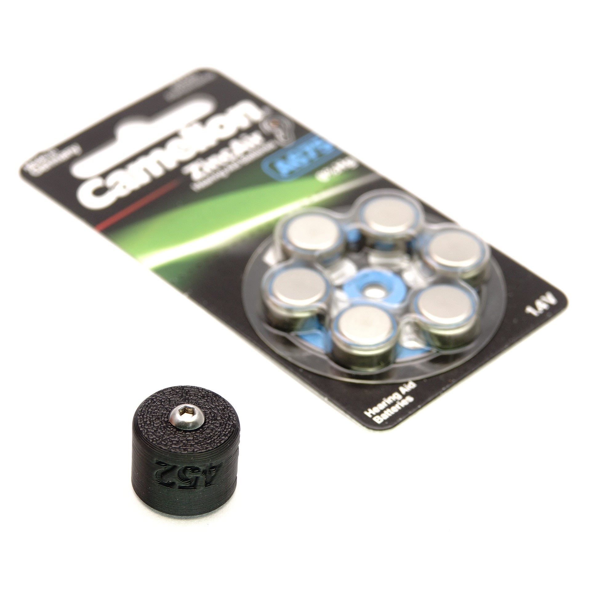 Die PX14 (auch V14PX oder 2MR9) war eine Doppelzelle mit 2,7 Volt, die in vielen Super-8-Kameras und frühen Belichtungsmessern zum Einsatz kam. Da Quecksilberbatterien nicht mehr erhältlich sind, haben wir diesen Adapter konstruiert. Er nimmt zwei günstige 675er Hörgerätebatterien (Zink-Luft) auf. Diese liefern eine extrem stabile Entladekurve von 1,35 V pro Zelle, was in Summe den benötigten 2,7 V entspricht. Dein Belichtungsmesser arbeitet damit so präzise wie am ersten Tag.