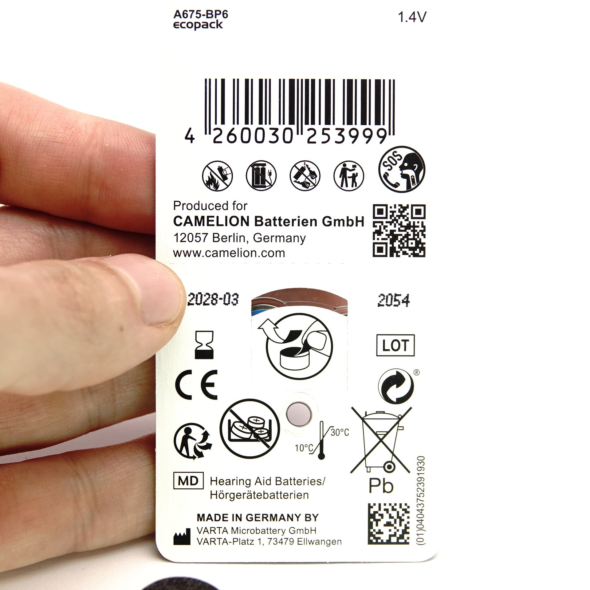 • Batterietyp: Benötigt 2x Typ 675 (Zink-Luft)