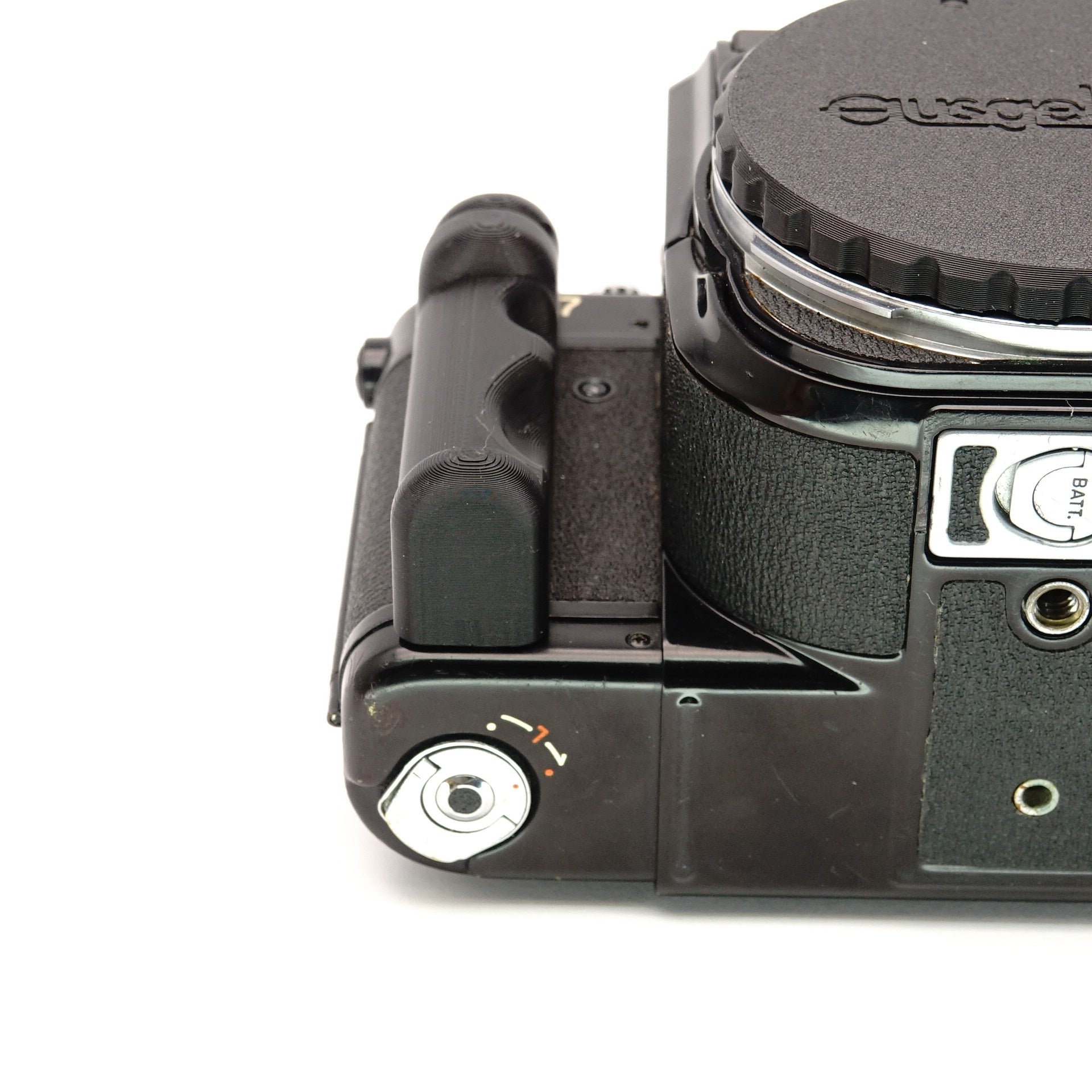 Este agarre asegura que tengas tu Pentax firmemente en mano. Fue diseñado para optimizar el manejo de la pesada cámara de formato medio. El montaje es sin herramientas: el agarre se sujeta simplemente al cuerpo y se fija mediante un mecanismo interno de resorte. Queda firme y seguro, sin tornillos. Aunque está moldeado para la mano derecha, también puede colocarse en el lado izquierdo si es necesario. Fabricado con plástico técnico resistente.