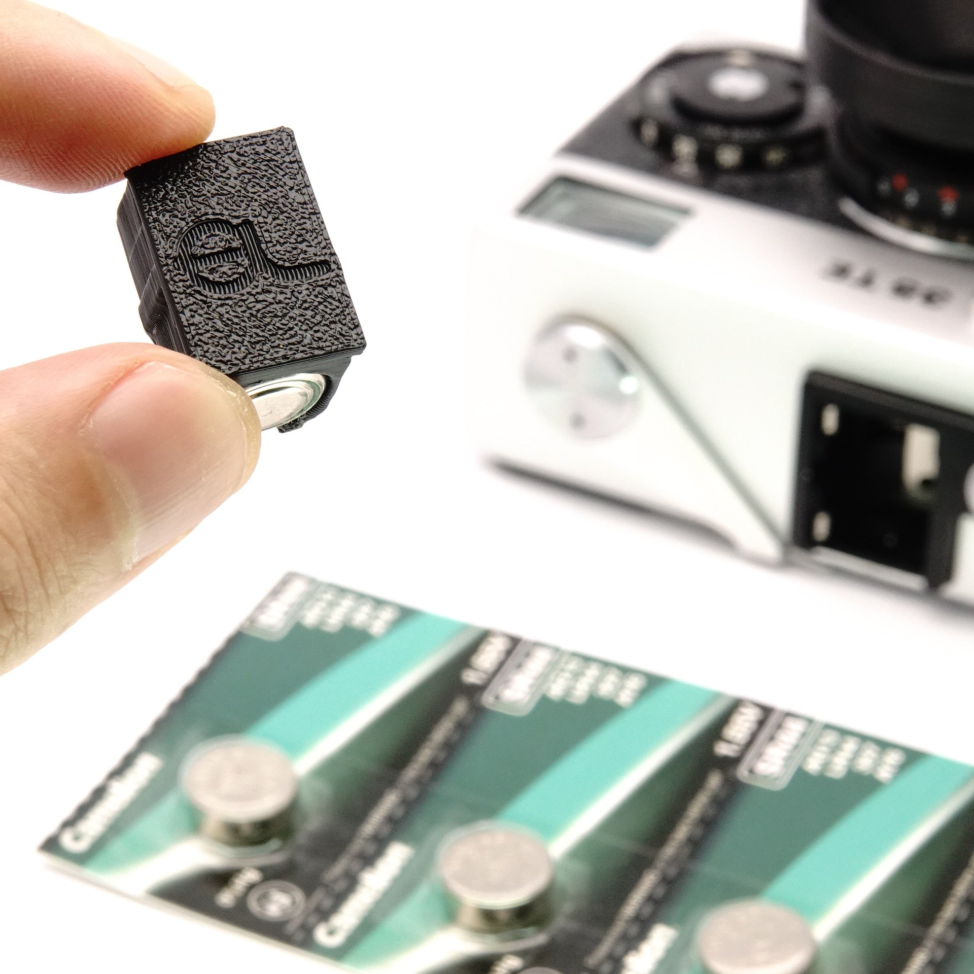 Este adaptador hace que tu Rollei 35 SE, TE o A110 vuelva a funcionar. En lugar de buscar existencias antiguas y agotadas de la PX27, simplemente usas cuatro pilas de botón modernas. El diseño está hecho para que las cuatro pilas tengan exactamente la misma altura que la batería original y se asegure el contacto. Como los fotómetros de la serie SE/TE y la A110 están regulados electrónicamente, la diferencia mínima de voltaje de 5,6V a 6V es despreciable en la práctica.