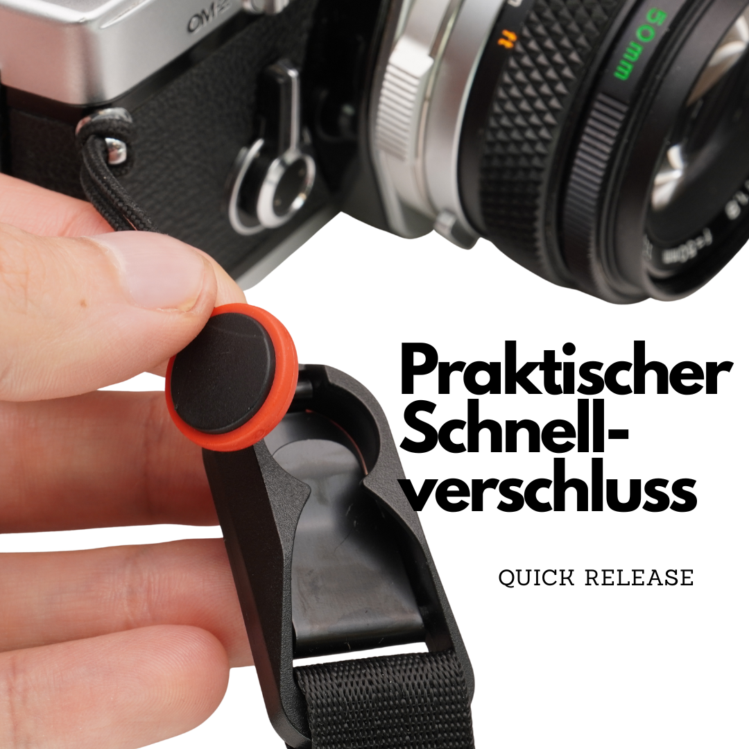 • ¿La correa molesta al usar el trípode? Con el cierre rápido puedes desconectar la correa en segundos. Sin complicaciones, sin vibraciones en exposiciones largas.
