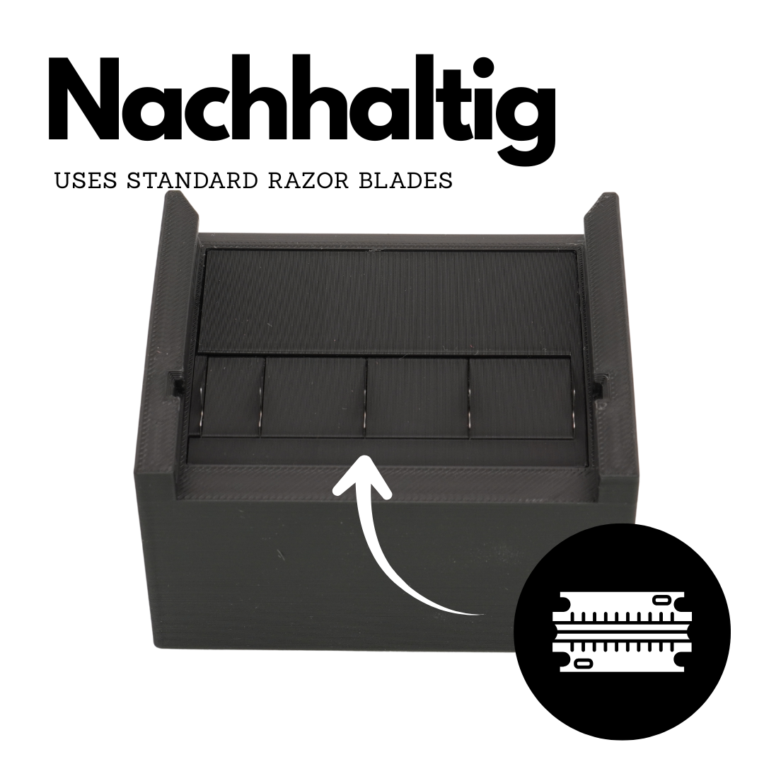 • Pièces de rechange coûteuses ? Nous utilisons des lames de rasoir standard que tu peux trouver partout à petit prix et remplacer facilement.