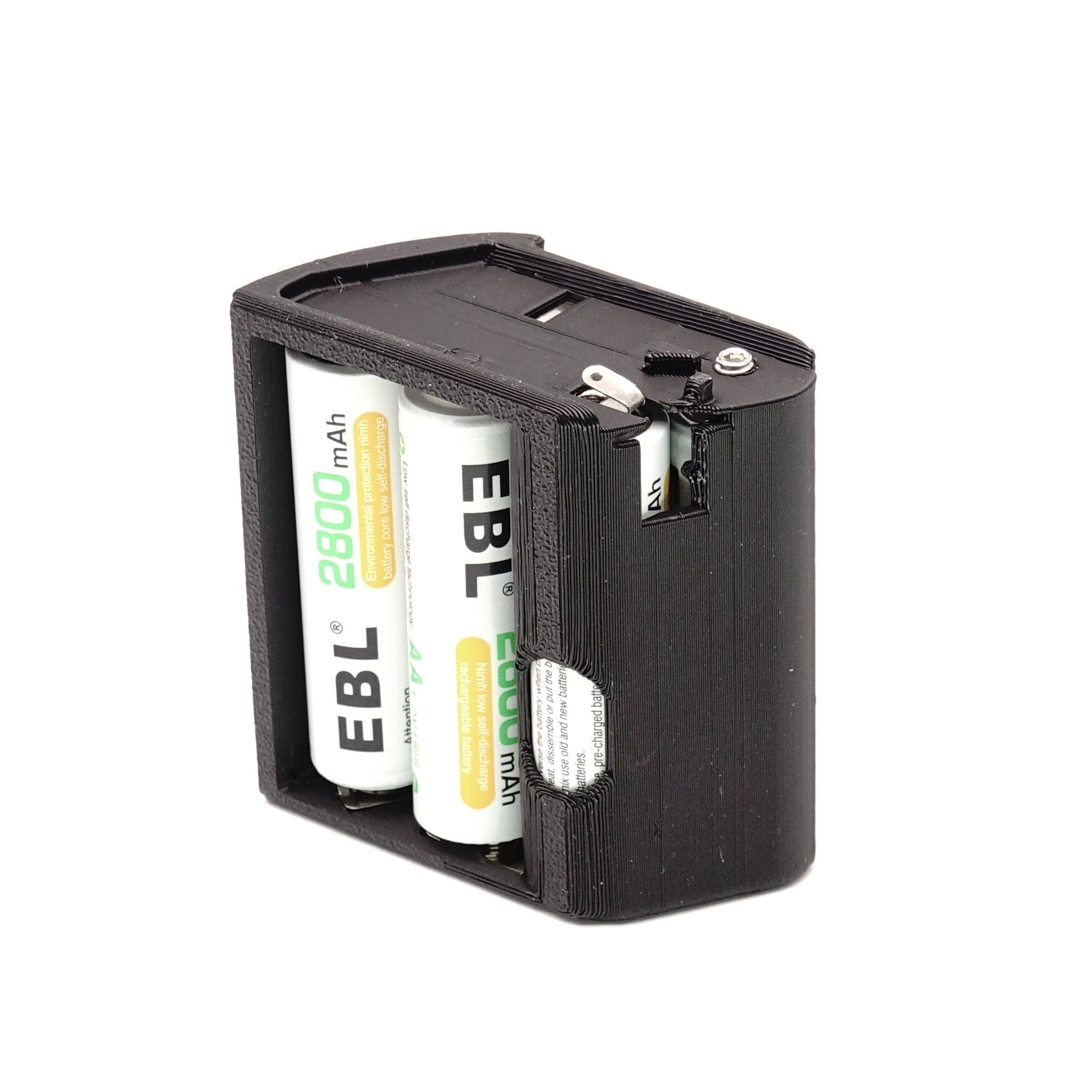 Ce support de piles remet ton Pentax 645 en marche. Il est fabriqué sur mesure et accueille 6 piles AA standard. Tu as le choix : utilise des piles classiques 1,5V pour une tension de 9V ou opte pour des accumulateurs rechargeables NiMh 1,2V (env. 8V). Nous recommandons des accumulateurs de qualité comme les EBL 2800 mAh pour une alimentation durable et écologique.