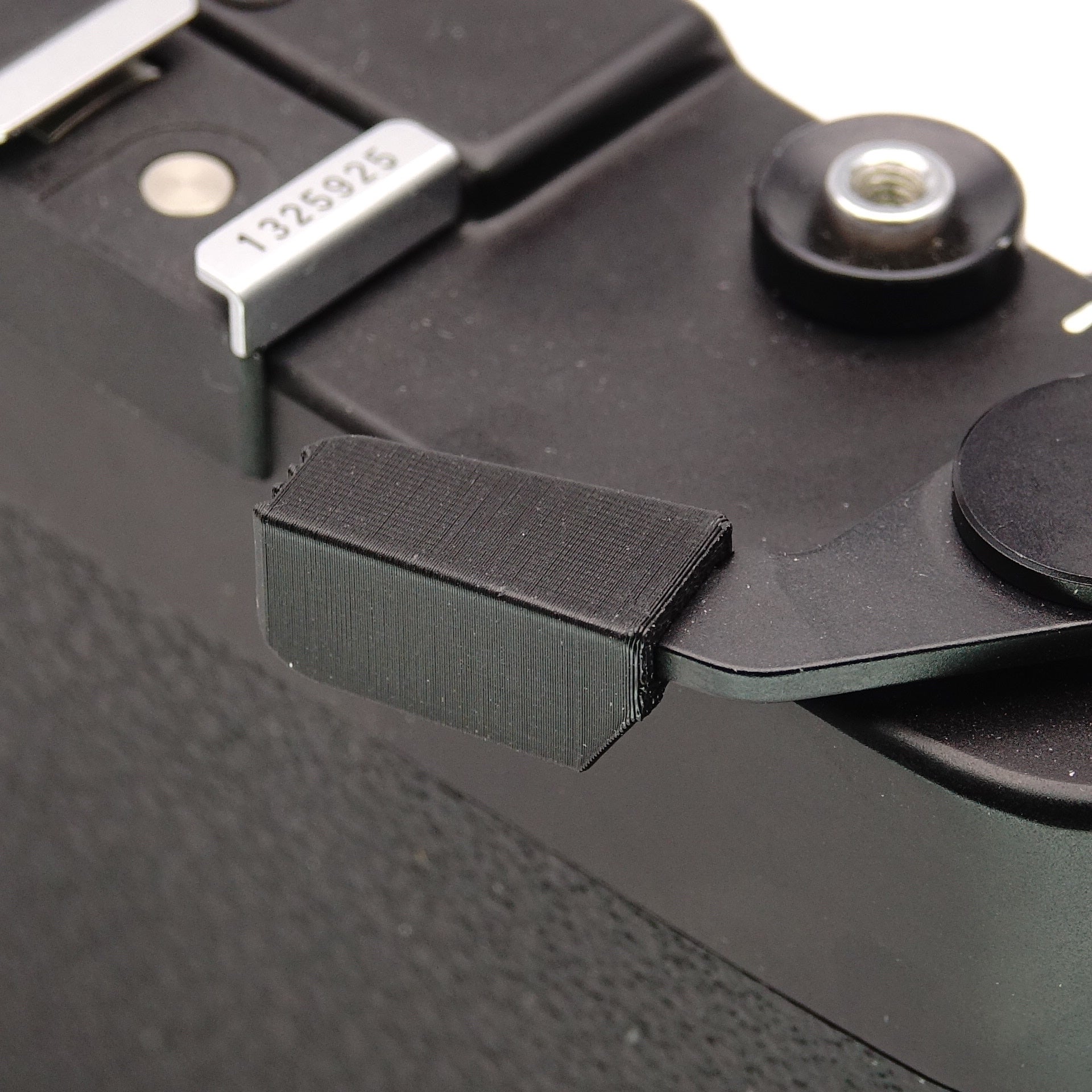 Ce cache remplace la pièce d’origine sur le levier de armement de la Leica CL. Comme l’original se perd souvent, nous avons conçu cette pièce de rechange. Elle se clipse simplement. Pour un maintien plus sûr, tu peux utiliser une goutte de colle cyanoacrylate.