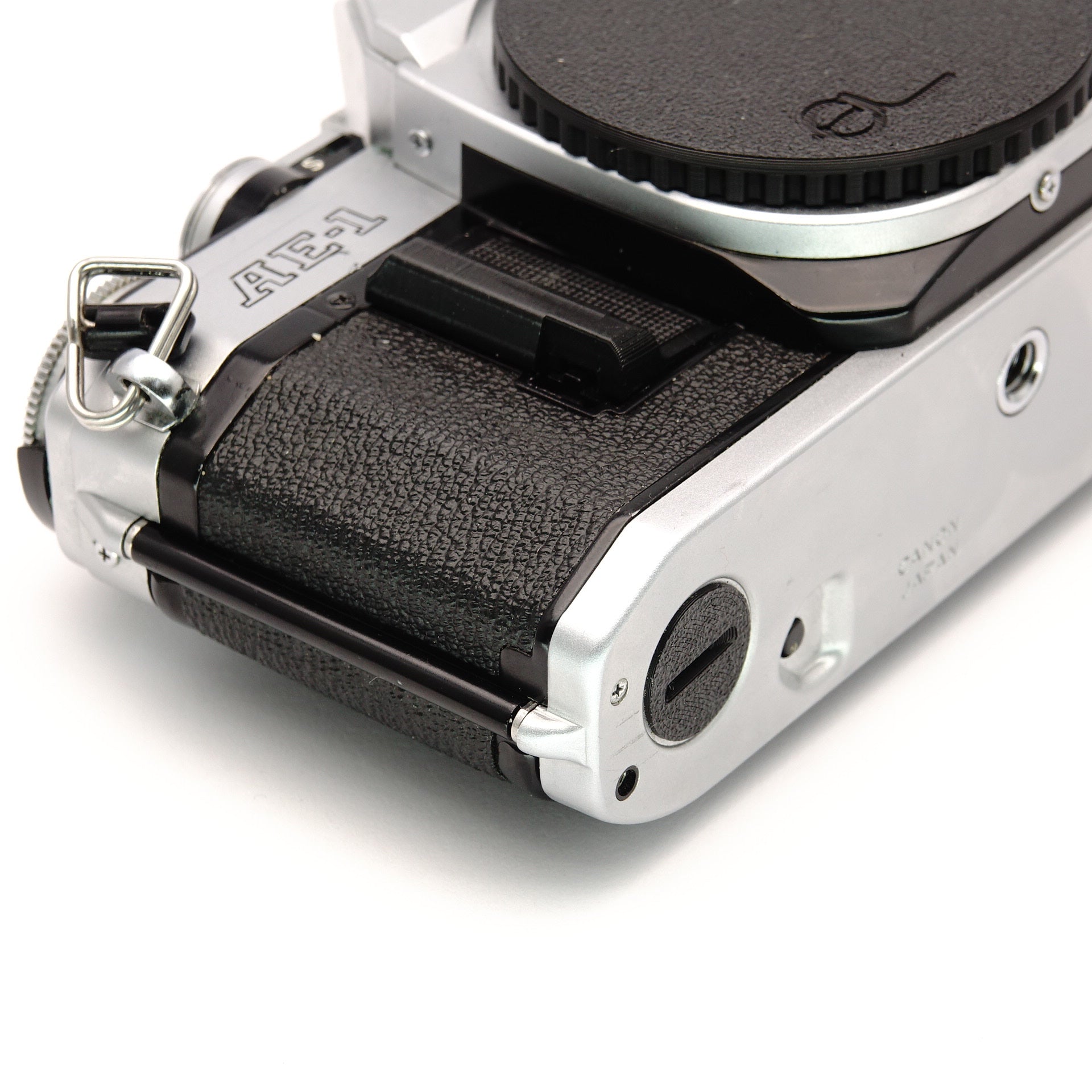 This cap replaces the frequently lost original part of the Canon A series. It is screwed into the thread at the bottom of the camera to cover the connections for the motor drive (winder) when it is not mounted. Made from sturdy PLA+.