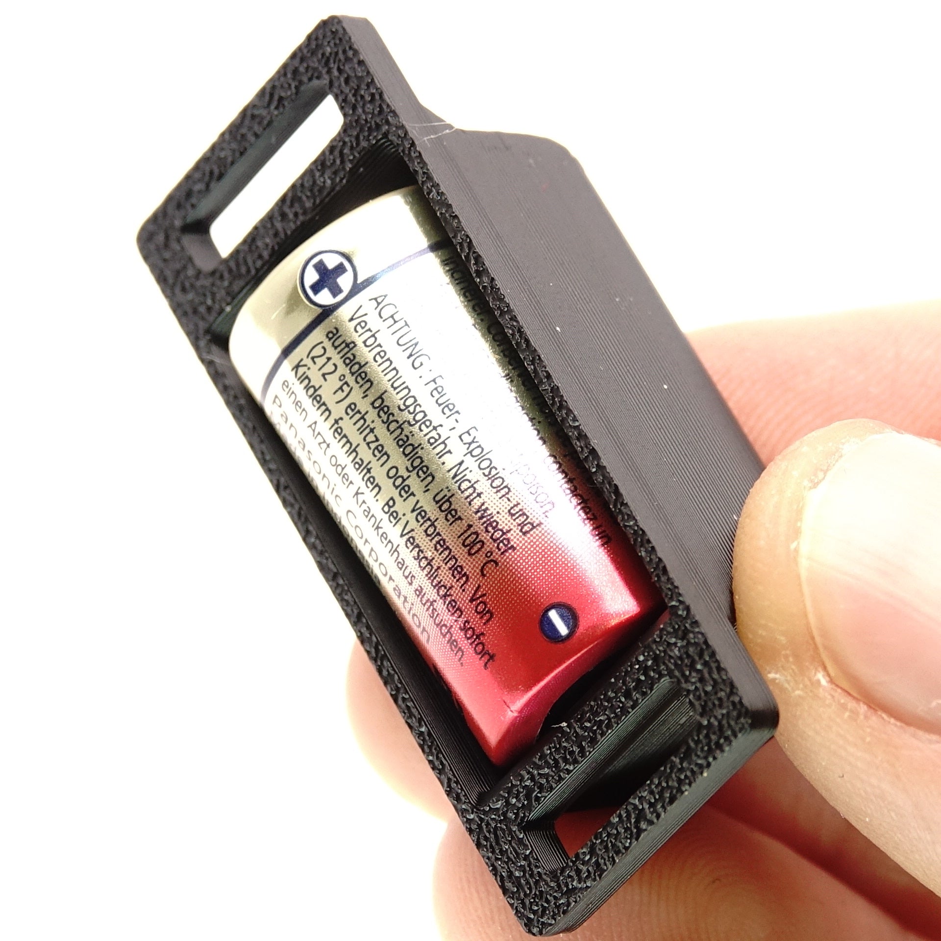 - Worried about a dead battery on the go? CR2 batteries are often hard to find – with this holder, you always have a spare right on your strap.