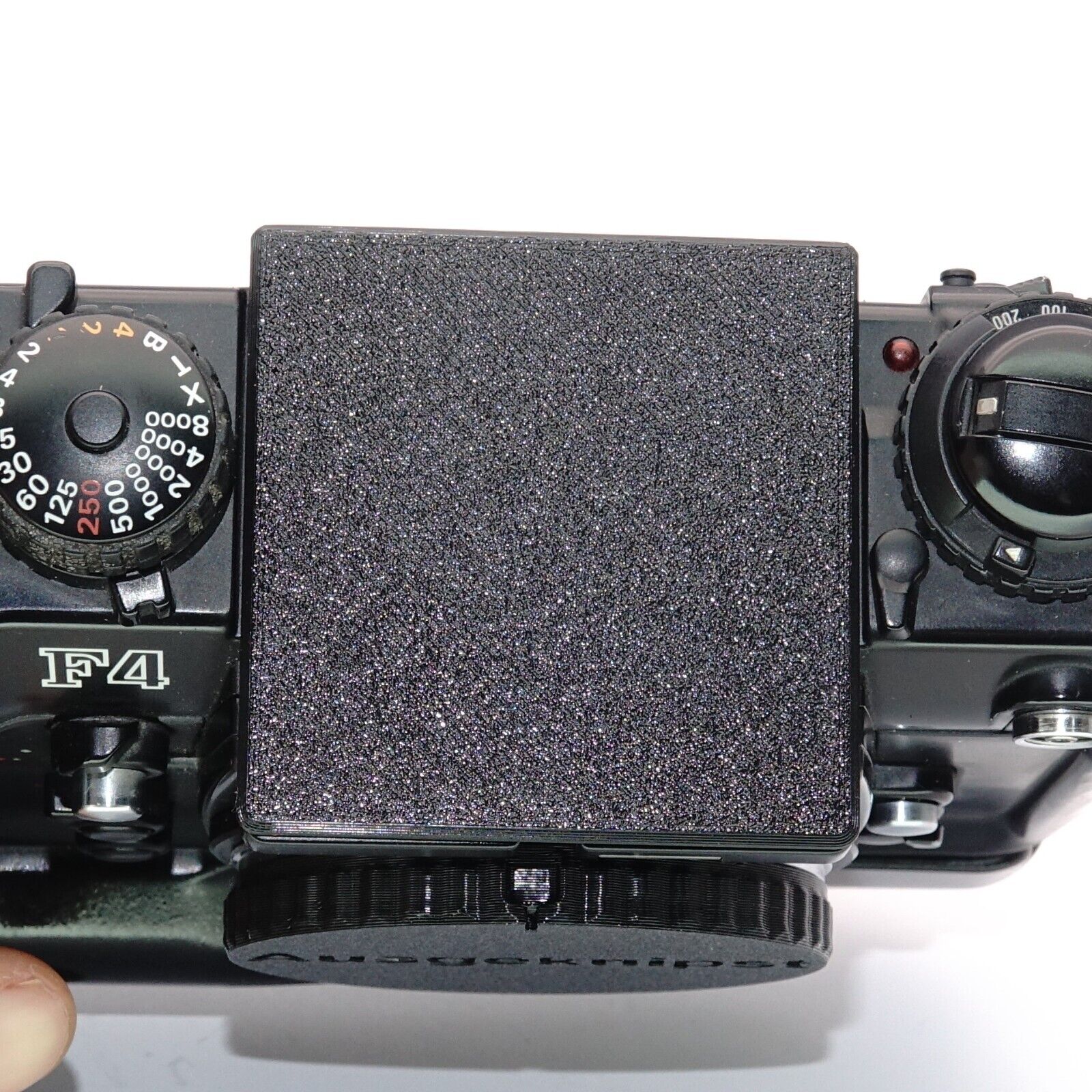 Anyone who uses the modular system of the Nikon F4 knows the problem: without the mounted viewfinder, the ground glass is unprotected. This cover serves as a placeholder for the prism and shields the sensitive surface from external influences. Ideal for space-saving transport of the body.